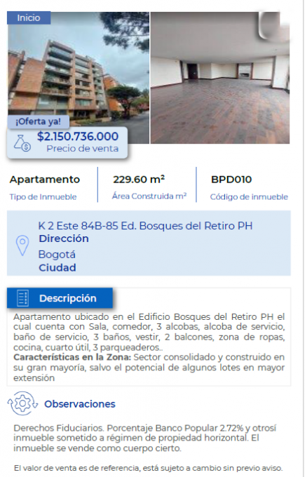 • Precio: COP$2,150,800,000