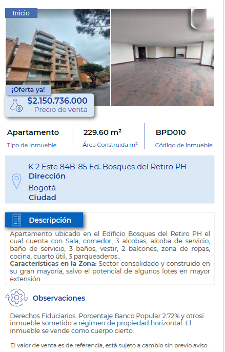 VENTA Apartametno bosques del retiro 229.60M2